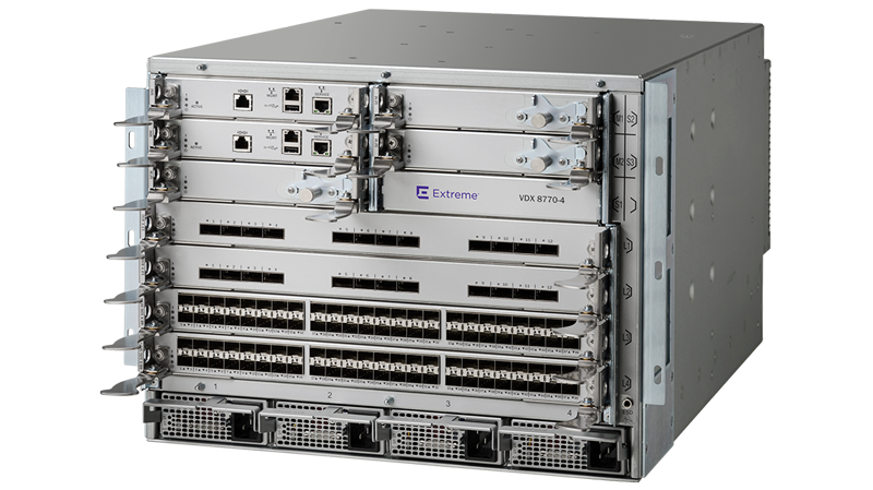 4 Tbps flow rate design per slot for significant capacity and headroom (up to 32 Tbps capacity for VDX 8770-8; up to 16 Tbps for VDX 8770-4)
